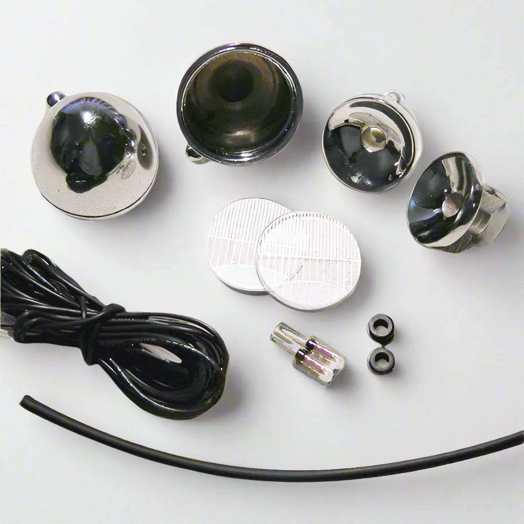 Includes the Bugatti Headlights, Reflectors, pattern Lenses, bulbs, grommets, heat shrink tubing and wire.