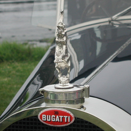 We have commissioned a replica of the famous Bugatti Elephant mascot. This wonderfully whimsical pachyderm was Ettore Bugatti's response to the failure of his huge Type 41 Royales to attract customers. His famous sculptor brother, Rembrandt Bugatti, provided him with the design, and Ettore had it cast in sterling silver. Copies of this famous mascot have found their way onto bookshelves and desktops the world over.