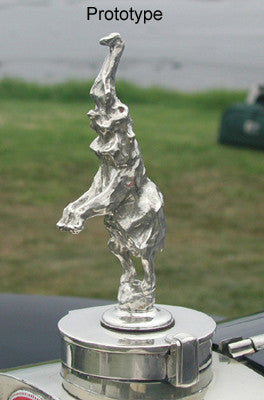 The MMLtd 1:8 scale Prancing Elephant Mascot was sculpted by Jill A. Kenike, a former designer for Tiffany and Co. Because our Prancing Elephant Mascot is intended to adorn the radiator of Pocher Bugattis, we asked Ms. Kenike to trim the pachyderm down a bit to match the svelt lines of the zoomy Profile and Suprofile Bugattis. Our Prancing Elephant Mascot is balancing on top of our new Bugatti Radiator Cap which features the correct profile and simulated quick-release latch of the prototype. Now the Pocher Bugatti can have both a correct radiator cap and a link with the artistic legend that is Bugatti.