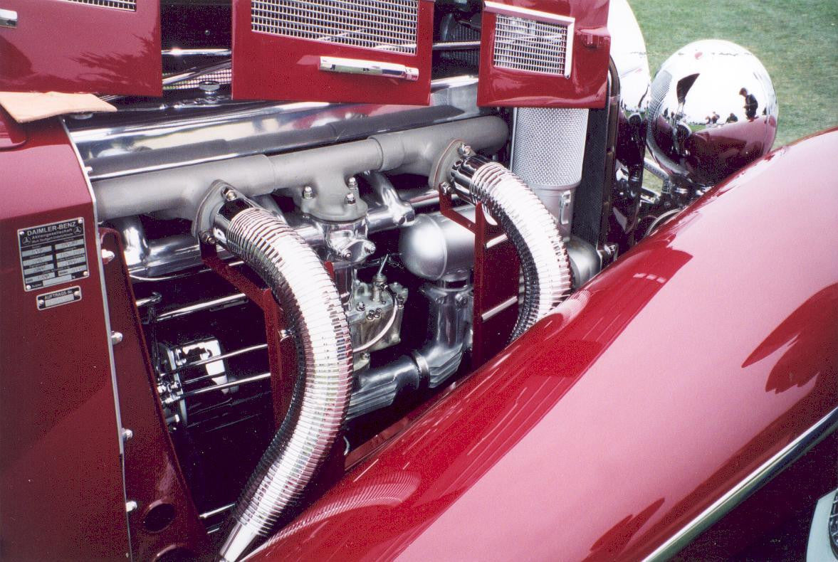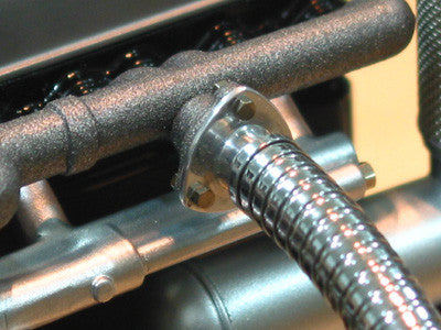 We have developed a complete kit that includes wonderful chromed flexible pipes, MML designed manifold mounts, cast in brass and chrome plated, enough 00-90 bolts and nuts to mount it and an aluminum rod to help hold the shape of the piping. It will transform your Mercedes model and it's easy to install.