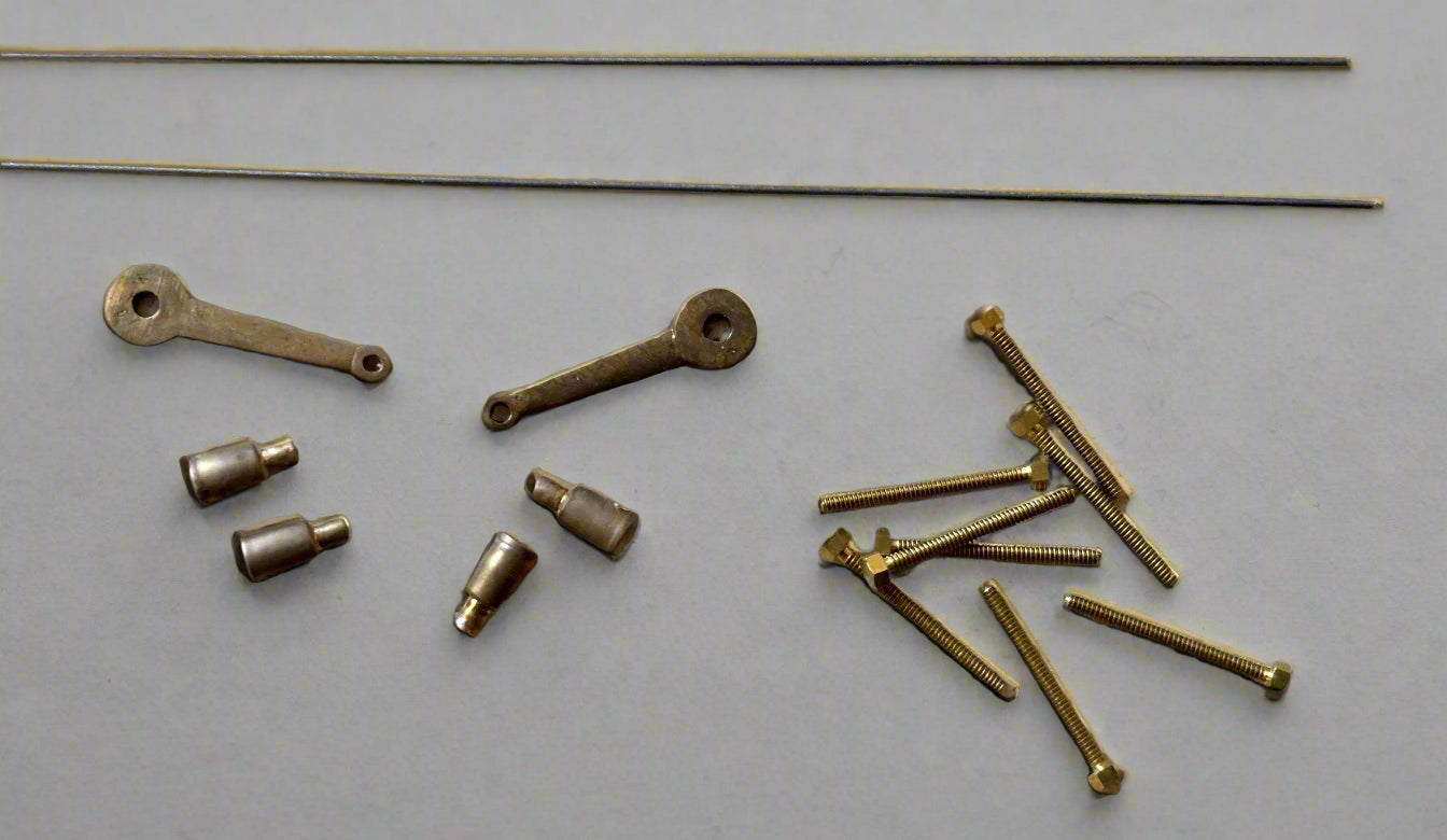 More replacements for Pocher stamped metal! These are prototypical (original blueprint from Rolls-Royce), cast in bronze and tapped for 00-90 brass bolts (8 provided).