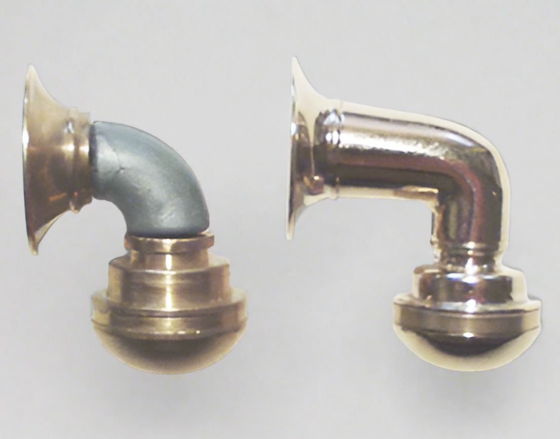 Polished cast bronze, drilled and tapped for side or rear mount. Compare to the Pocher!