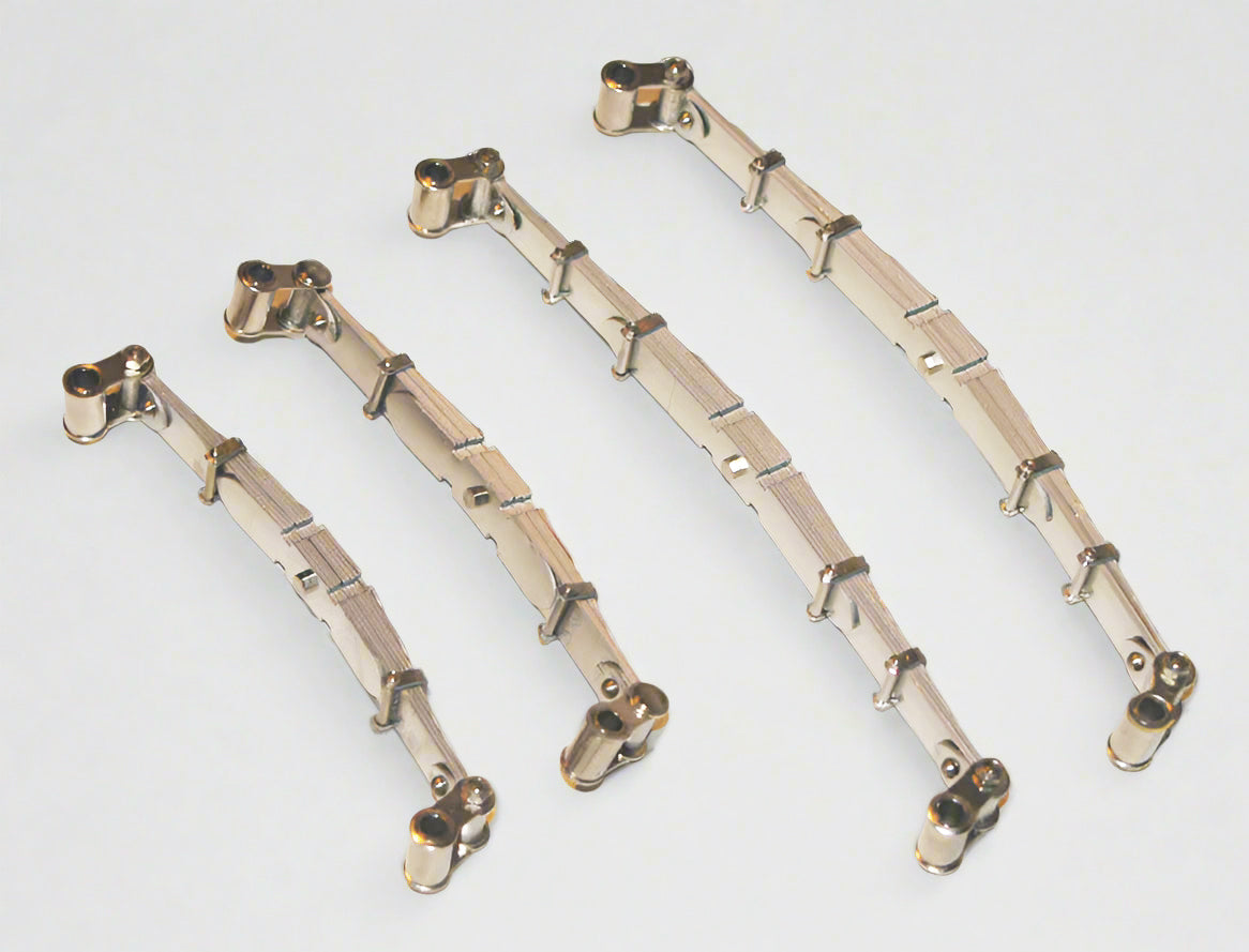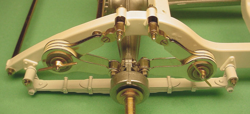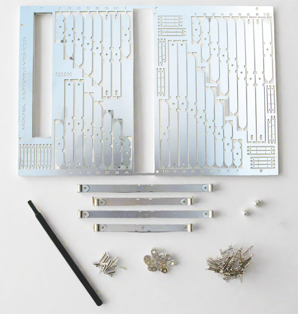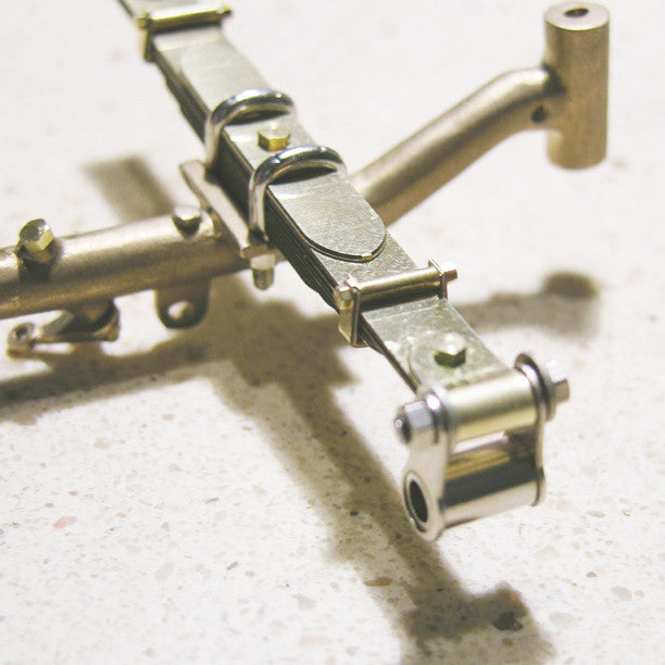 In our continuing quest to improve the quality of Pochers, Model Motorcars has developed a functional set of Alfa Leaf Springs! Direct replacement for the Pocher springs; requires no modifications. Photo-etched from stainless steel, with the ends preformed with loops (no soldering required), the clamp tubes precut, and all the 0-80, 00-90, 1.0 mm nuts and bolts, and 2.0 mm washers to complete the set. Plus, we include a 1.0 mm wrench! Those 1.0 mm nuts are almost impossible to use without one.