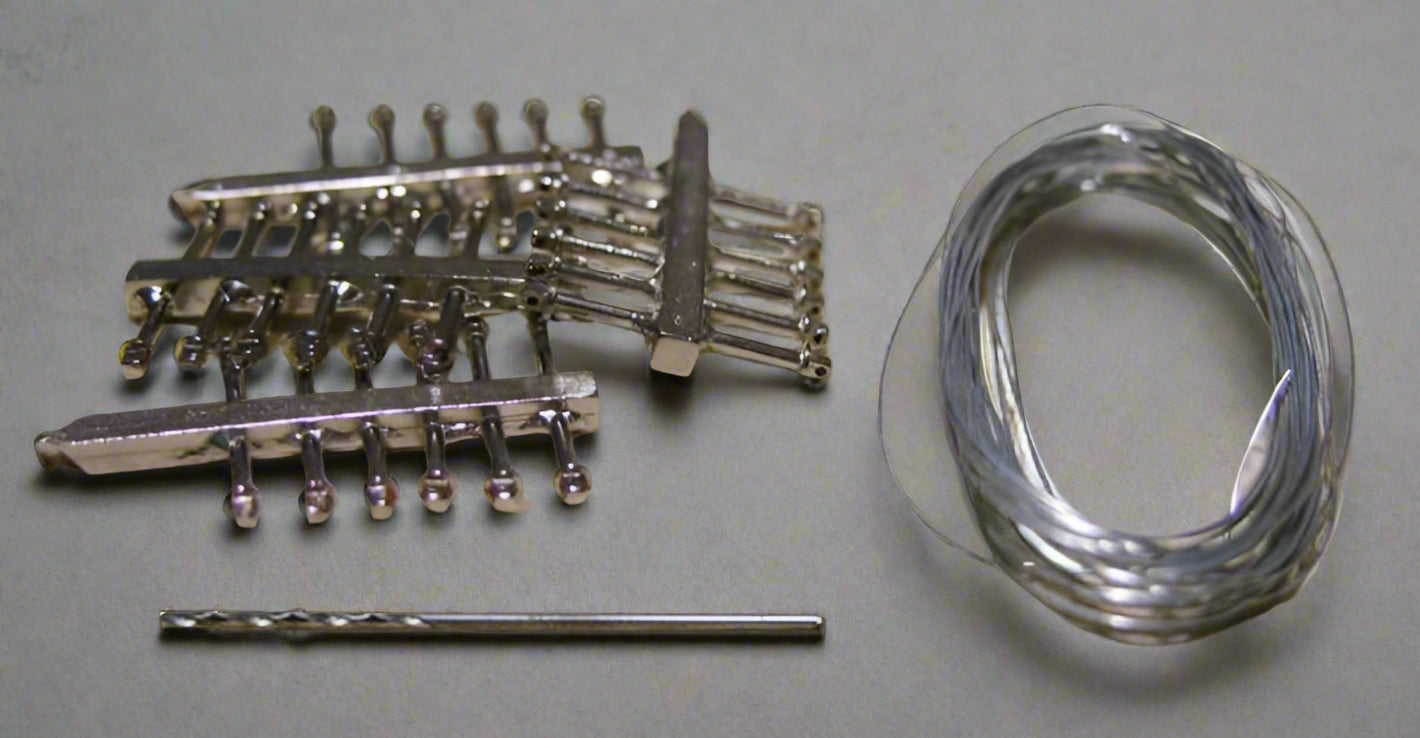 The Studs (48) are cast in bronze, nickel plated. Includes 2 yds. of 28 gauge wire and #61 drill.