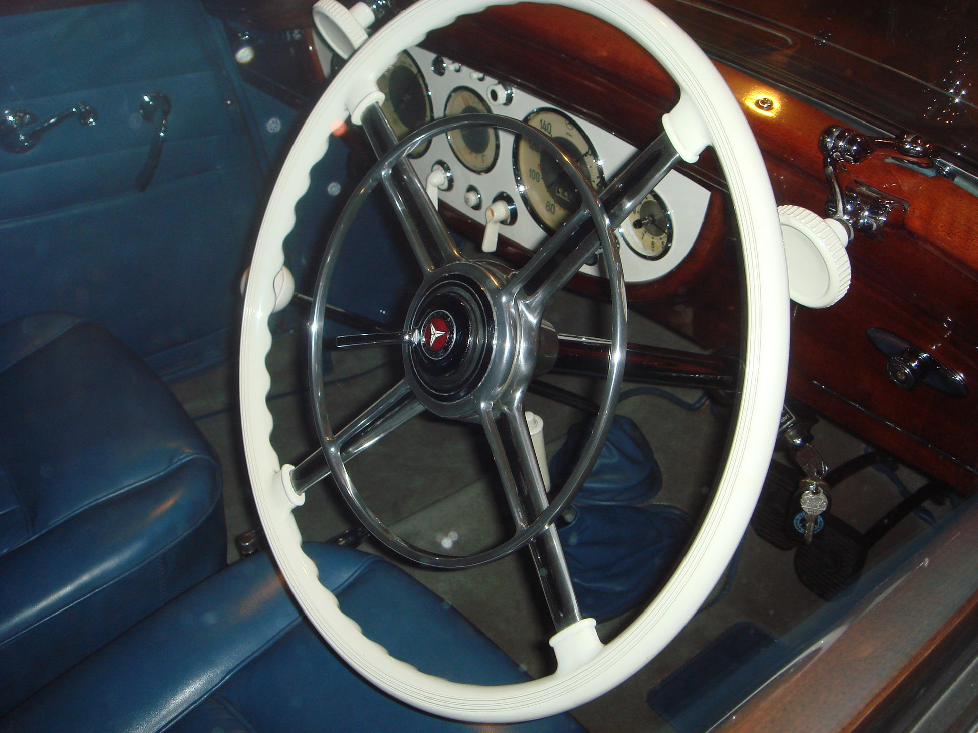 The breakthrough for the new chrome plated cast bronze Steering Wheel is in our sand blasting the rim so it can be painted! Just mask off the spokes and spray either black or white, the results are amazing.