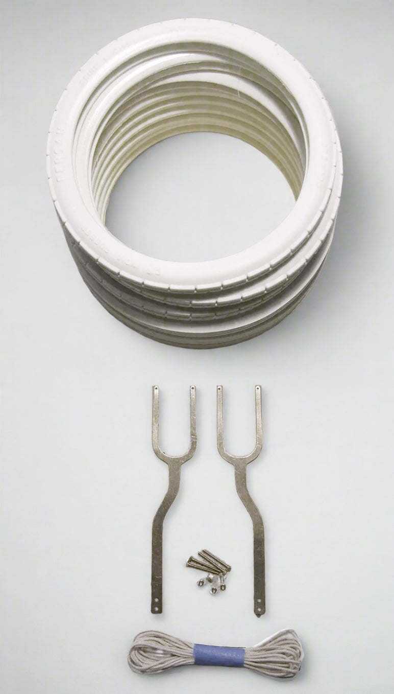 Complete set of six White Tires (3 Front and 3 Rear) and our Spare Tire Support Racks for the K-77 or K70 with or without using our Wooden Wheels Kit.