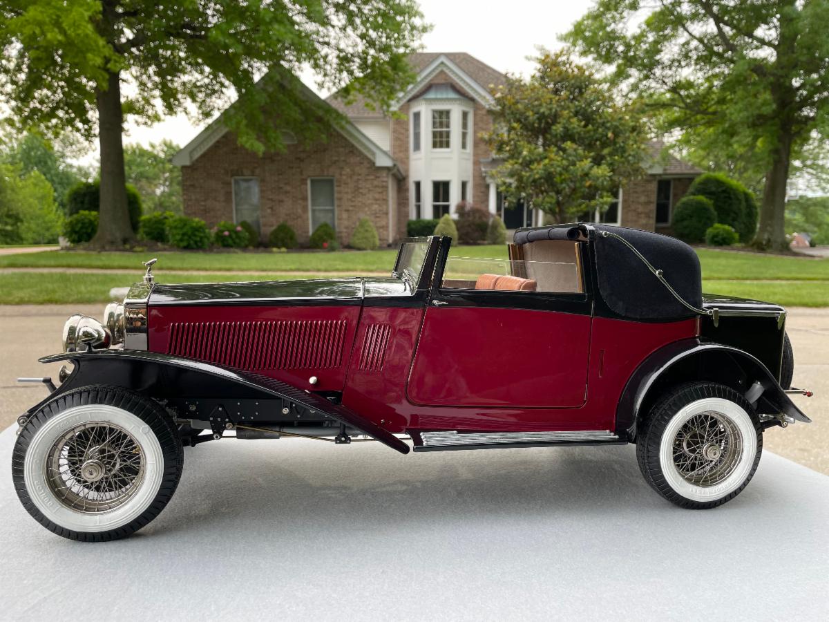 When it first appeared in US hobby shops, the Pocher 1932 Rolls-Royce Phantom II Drop Head Sedanca Coupe was the bee’s knees. The box top illustration of the glamorous couple shown in the rear seat, behind the chauffeur in his natty cap and uniform, can transport some of us to our magical memories of first seeing this huge box on the hobby shop counter. And it was surely on the counter, because at this cost, the hobby shop owner was going to make sure that as many customers as possible would be exposed to the wonderment of the latest Pocher masterpiece. The clever packaging, with the kit itself safely sealed away from prying fingers and the instruction manual trapped between the outer cover and this inner sanctum of delightfulness—safe but easily accessible—and the whole kit and kaboodle certified with a serial-numbered seal. How can a kit offer more fun than this?
